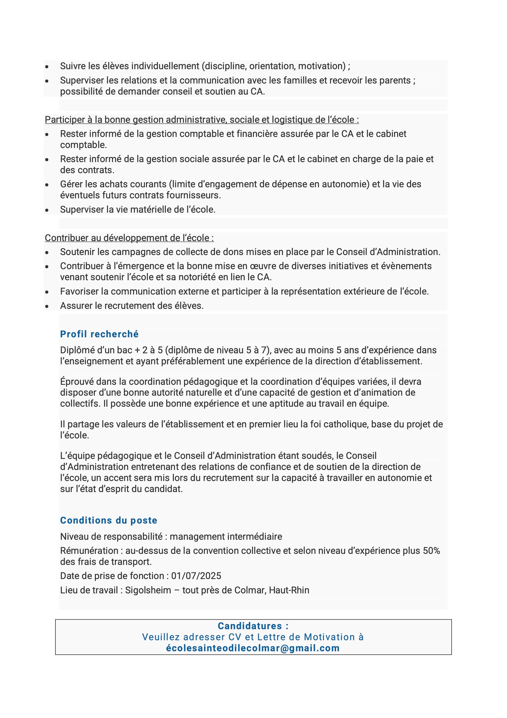 L'Ecole Sainte-Odile cherche son futur directeur !